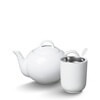 Genau das richtige Maß für eine Portion Tee hat dieses Teekännchen. Und für das Sieb gibt es gleich den passenden formschönen Ablagebecher. Weißes Porzellan, 0,4 l komplett mit Einsatzsieb aus Edelstahl und Ablagebecher.